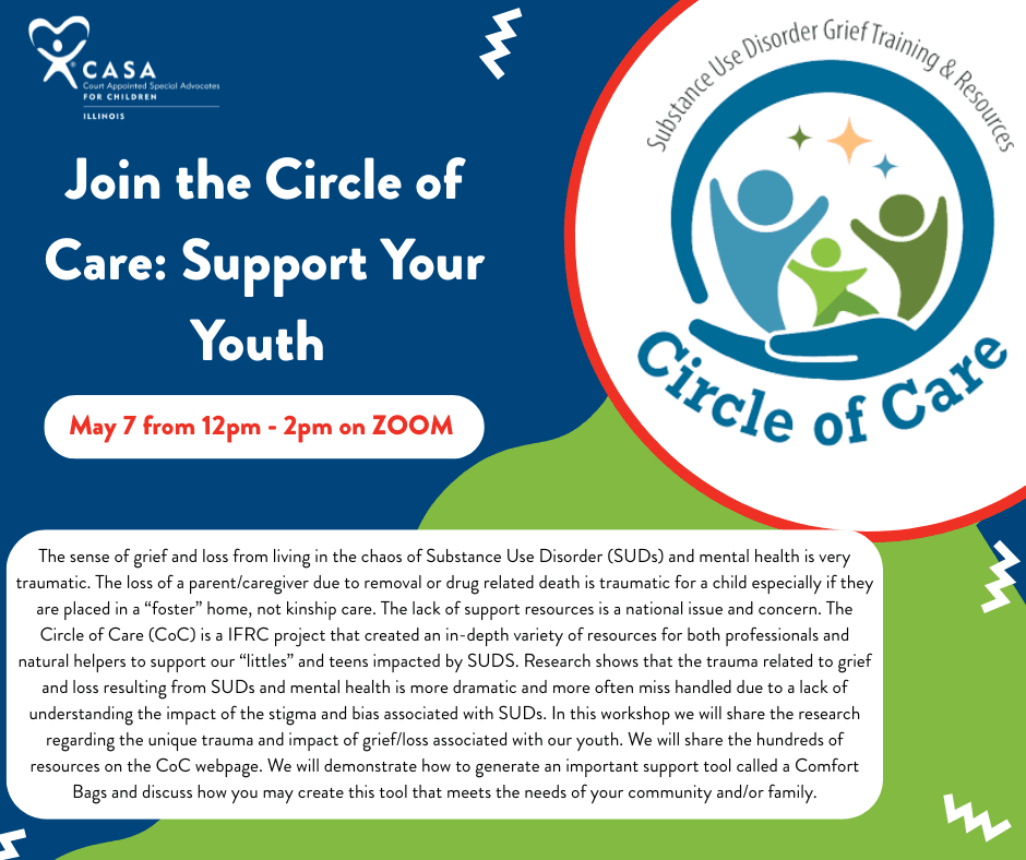 The sense of grief and loss from living in the chaos of Substance Use Disorder (SUDs) and mental health is very traumatic. The loss of a parent/caregiver due to removal or drug related death is traumatic for a child especially if they are placed in a “foster” home, not kinship care. The lack of support resources is a national issue and concern. The Circle of Care (CoC) is a IFRC project that created an in-depth variety of resources for both professionals and natural helpers to support our “littles” and teens impacted by SUDS. Research shows that the trauma related to grief and loss resulting from SUDs and mental health is more dramatic and more often miss handled due to a lack of understanding the impact of the stigma and bias associated with SUDs. In this workshop we will share the research regarding the unique trauma and impact of grief/loss associated with our youth. We will share the hundreds of resources on the CoC webpage. We will demonstrate how to generate an important support tool called a Comfort Bags and discuss how you may create this tool that meets the needs of your community and/or family.